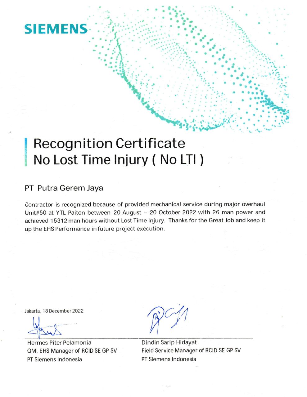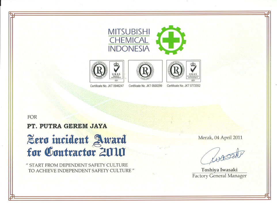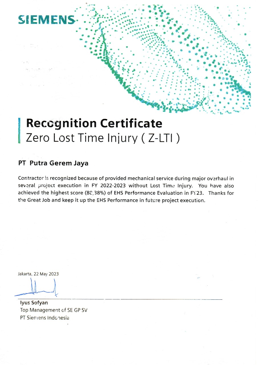 Putra Gerem Jaya has collaborated with several companies such Krakatau Steel, Mitsubishi Chemical, SIEMENS, INEOS Aromatics, Daekyung.
